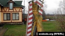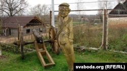Перад самой вёскай будуецца вялікая аграсядзіба. Гаспадара, на жаль, засьпець не ўдалося. Ён жыве ў сталіцы. Але вартаўнік правёў мне невялікую экскурсію. Вайна 1812-га году прадстаўлена ў сядзібе годна. У выглядзе драўляных скульптур.