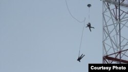 Хлопца, які ў мінулыя выходныя скакаў з парашутам зь менскай тэлевежы, завуць Дзіма. Іншых удзельнікаў дзёрзкага скачка ён назваць адмовіўся. Не захацеў расказваць і падрабязнасьцяў наконт таго, як ім удалося прайсьці на рэжымны аб’ект.