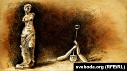Жанчына была мармуровая, ніжняя яе частка ляжала асобна ад верхняй, але селяніна ўсё гэта ня надта зьбянтэжыла. Жылі тыя Кентротасы бедна, ды розуму ў іх, як і ва ўсялякай беднай басоты, хапала. У той час ягоная радзіма зрабілася сапраўднай ахвярай аматараў антычнасьці — натоўпы чорных археолягаў зь белымі рукамі і блакітнай крывёй аралі Грэцыю ўздоўж і ўпоперак у пошуках хаця б якога-небудзь каменнага носа часоў Паліклета і Алкамена. Яны былі гатовыя аддаць за такі нос больш, чым селянін Кентротас мог зарабіць за ўсё сваё жыцьцё. А тут — цэлая кабета, хай сабе і разламаная напалам... Пераймацца неверагоднай прыгажосьцю статуі Кентротас не зьбіраўся: падумаеш, у ягонай вёсцы ўсе дзяўчаты былі такія, а некаторыя дык і лепшыя. У нас у Грэцыі ўсе мужчыны — Апалёны, а ўсе жанчыны — Афрадыты, сказаў сам сабе з гордасьцю праваслаўны Георгіяс, і толькі грошай у нас пры гэтым чамусьці ніколі няма. Ён схаваў знаходку ў загоне для козаў і стаў чакаць пакупніка.
