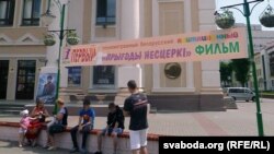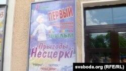 Расьцяжка на пляцоўцы перад кінатэатрам «Радзіма» запрашае магілёўцаў паглядзець беларускамоўны мульцік па-расейску. Для беларускай мовы пакінулі толькі назву стужкі. На расейскай мове зроблены і плякат, разьмешчаны ля ўваходу ў кінатэатар.