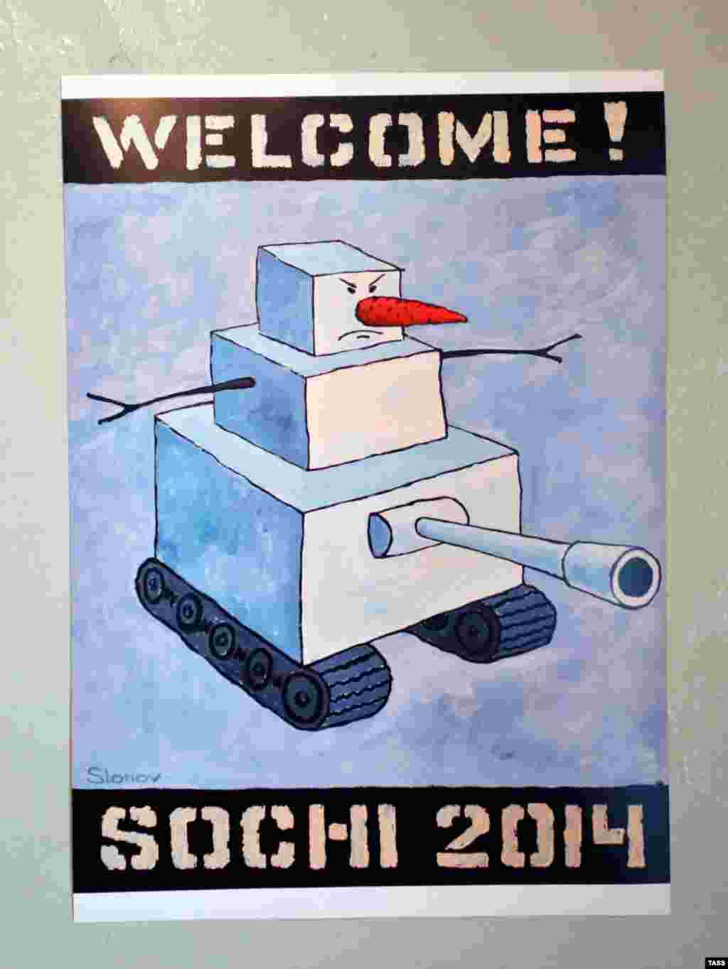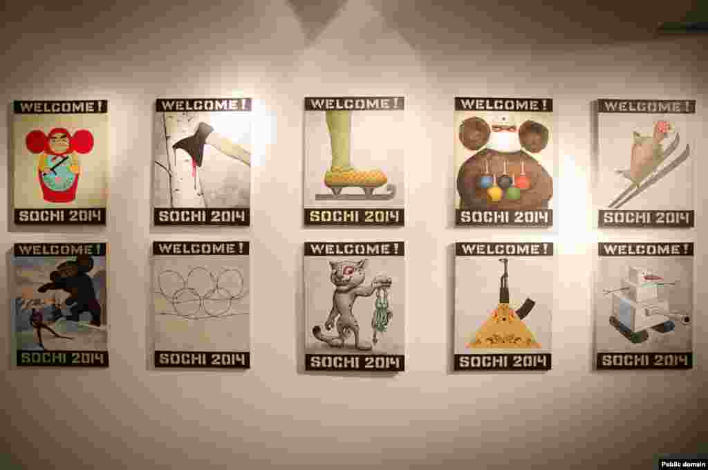 Пакуль Расея рыхтуецца прыняць зімовыя Алімпійскія гульні 2014 году ў Сочы, мастак Васіль Слонаў арганізаваў выставу сатырычных малюнкаў, дзе парадуецца дзяржаўная піяр-кампанія па прасоўваньні Алімпіяды ў Сочы. У сэрыі постэраў ён сумясьціў спартовыя сцэны і застрашальныя вобразы рэпрэсіўнай Расеі. Выстава была зладжаная падчас культурнага фэстывалю «Белыя ночы» у Пярмі, гэтая выстава хутка зьвярнула на сябе ўвагу ўладаў: яе зачынілі і звольнілі куратара Пермскага музэю сучаснага мастацтва, дзе яна праходзіла. У якасьці афіцыйнай падставы было названае несанкцыянаванае выкарыстаньне Слонывым сымболікі Алімпіяды ў Сочы.