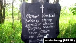 «Памяці польскіх жаўнераў, што загінулі, абараняючы айчыну 17-га верасьня 1939-га году. Старшы сяржант Мніх, капрал Макух». Імя трэцяга, шарагоўца, на жаль, зацерлася. Пахавалі памежнікаў мясцовыя людзі. І глядзелі за магілай заўжды. Сваёй вэрсіяй гэтай трагедыі са мной падзяліўся старажыл Алковіч, Эдвард Церах.