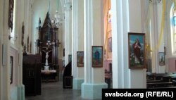 Па інтэр’еры касьцёла, па захаванасьці старажытных абразоў і алтароў нават і не падумаеш, што храм амаль паўстагодзьдзя быў калгасным складам.