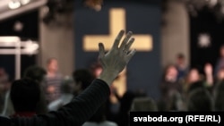 Прыхаджане царквы «Новае жыццё» моляцца за свайго пастара.