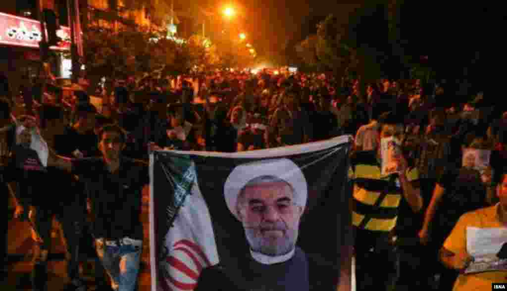 Іранскія ўлады абвясьцілі 15 чэрвеня, што 64-гадовы сьвятар Рухані Хасан атрымаў 50,68 адсоткаў ці 37 млн галасоў, пададзеных на прэзыдэнцкіх выбарах напярэдадні. Вынікі выклікалі сьвяткаваньне на вуліцах Ірану, і ў цэлым вынікі выбараў былі прызнаныя за мяжой.