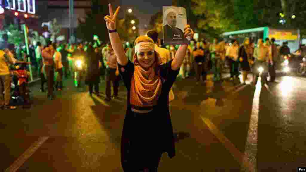 Масавыя вулічныя сьвяткаваньні з нагоды перамогі Рухані на выбарах у Іране