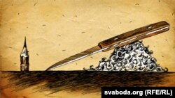 І тут пільныя госьці пабачылі звычайны кухонны нож, які ляжаў акурат каля рукапісу кніжкі пра таварыша Гікалу. «Орудіе страшного преступленія» злавесна паблісквала, на лязо па-здрадніцку наліплі хлебныя крошкі і ледзь прыкметная пазелянелая палоска таннай каўбасы.