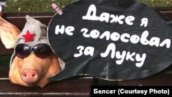 Сёньня зраніцы Павал Вінаградаў правёў акцыю на плошчы Якуба Коласа Раскладзеныя на лаўцы сьвіныя галовы ляжалі побач з палітычнымі лёзунгамі: «Нават не галасаваў за Лукашэнку», «Чаму чыноўнікам паднялі зарплату, а лекарам не?», «Саша, ня будзь сьвіньнёй, вызвалі палітвязьняў»