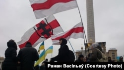 «Наагул на плошчы каля 15 беларусаў. Ад Маладога Фронту на Эўрамайдан 26 лістапада прыехала 6 чалавек. Пакуль не магу сказаць, колькі мы тут будзем заставацца, — будзем глядзець па сытуацыі. Але пакуль застаемся. На Майдане зараз знаходзіцца вялікая колькасьць студэнтаў, грае музыка, кожную гадзіну сьпяваем гімн Украіны.