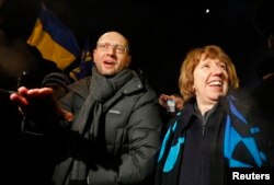 Эштан усё яшчэ ў Кіеве, выказала засмучанасьць дзеяньнямі Януковіча