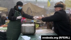 Вось каб гэтага не адбылося, спадар Васіль з жонкаю другі месяц прыходзяць на майдан, нясуць сюды закаткі, прыгатаваныя для ўнукаў, за свае пэнсійныя грыўні купляюць коўдры для жыхароў намётаў.