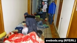 Пасьля 3-й гадзіны навагодняй ночы вольнага месца ў калідоры зусім не застаецца, а людзі ўсё падцягваюцца. Што было рабіць? Хто сыходзіў зусім, хто чакаў на лесьвіцы, пакуль не вызваліцца які закуточак. Адказныя за паверх рэгулярна абыходзілі сваю тэрыторыю з просьбай да тых, хто ўжо паспаў хоць пару гадзінаў, даць магчымасьць адпачыць іншым. Некаторыя падымаліся і такім чынам зьмена пастаяльцаў сапраўды адбывалася. Але ў 9 раніцы з калідору паднялі ўсіх — пачалася прыборка. Праз 5 хвілінаў мы зноў былі на майдане. Прычым ўжо даволі чыстым — сьмецьце вакол эстрады было большасьцю прыбранае, нават падмялі канфэці, якое падчас навагодняга салюту сыпалася з неба на галовы больш як 100 тысяч майданаўцаў.