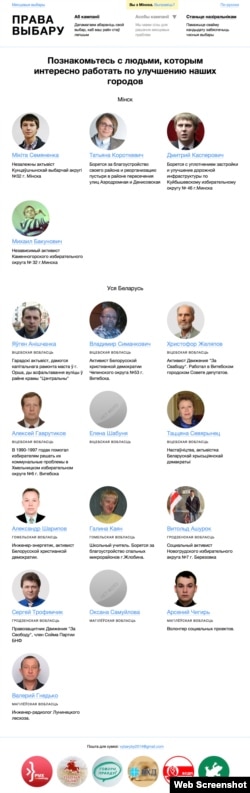 На сайце сабраная інфармацыя пра арганізацыі, партыі і будучых кандыдатаў, якія плянуюць браць удзел у кампаніі.