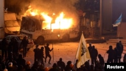 Прыкладна зь 15:00 па кіеўскім часе пасьля завяршэньня выступаў лідэраў Эўрамайдану радыкальна настроеная частка мітынгоўцаў рушыла ў Вярхоўную Раду. На вуліцы Грушэўскага каля стадыёна «Дынама» іх сустрэлі шэрагі ўнутраных войскаў і спэцаддзелу «Беркут».