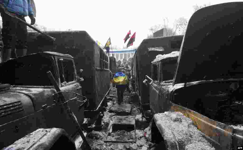 На вуліцах Кіеву працягваюцца сутычкі пратэстоўцаў і спэцназу «Беркут»