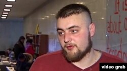 Тарас Кабялка цяпер ва Ўкраінскім доме разам зь іншымі мітынгоўцамі. Ён распавёў: