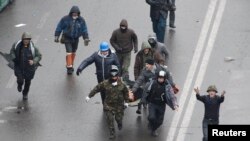 Параненых у сутыкненнях актывістаў дастаўляюць на Міхайлоўскую плошчу.