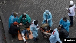 Параненых у сутыкненнях актывістаў дастаўляюць на Міхайлоўскую плошчу.