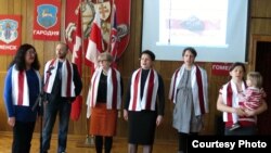 Прысутныя змаглі таксама пабачыць кадры з мітынгу, арганізаванага украінскай дыяспарай Таронта, на якім выступалі і сябры ЗБК.