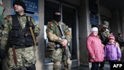 Ва ўсходніх абласьцях Украіны ў панядзелак працягнуліся прарасейскія маніфэстацыі. У Данецкай вобласьці хваляваньнямі ахопленыя гарады Краматорск, Славянск, Марыюпаль і Горлаўка. Некалькі дзён раней выступы прыхільнікаў фэдэралізацыі або аддзяленьня ад Украіны пачаліся ў Данецку, Луганску і Харкаве. Захопленая сэпаратыстамі Макееўская гарадзкая рада ў панядзелак прыняла рашэньне аб рэфэрэндуме наконт адміністрацыйна-тэрытарыяльнага статусу гораду.