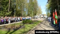 Прыкладна столькі ж працягвалася ля крыжа памяці акцыя актывістаў апазыцыі. На яе прыйшло паўтара дзясятка чалавек. Прамоўцы гаварылі пра ўтойваньне ўладай зьвестак пра наступствы Чарнобыля, калі адбылася аварыя. Крытыкавалі дзеяньні цяперашняга кіраўніцтва, якое заяўляе, што забруджаныя тэрыторыі прыдатныя для гаспадараньня і пражываньня.