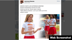 У групе «Работа Мінск» зьявілася абвестка пра набор дзяўчат на раздачу георгіеўскіх стужачак 9 траўня.