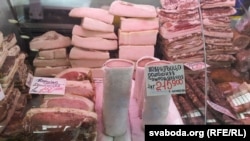 На сталічнай Камароўцы на цэньніках кошты адны, але як толькі патэнцыйны пакупнік зірне на мяса, гандляры пачынаюць прапаноўваць значна таньней, чым напісана. На цэньніках шыя — па 160 тысяч, філей — 150, кумпяк — 130, грудзінка — 110. Звычайнае салёнае сала — таксама па 110 тысяч. Людзі часьцяком праходзяць міма, толькі ўбачыўшы цэньнікі.