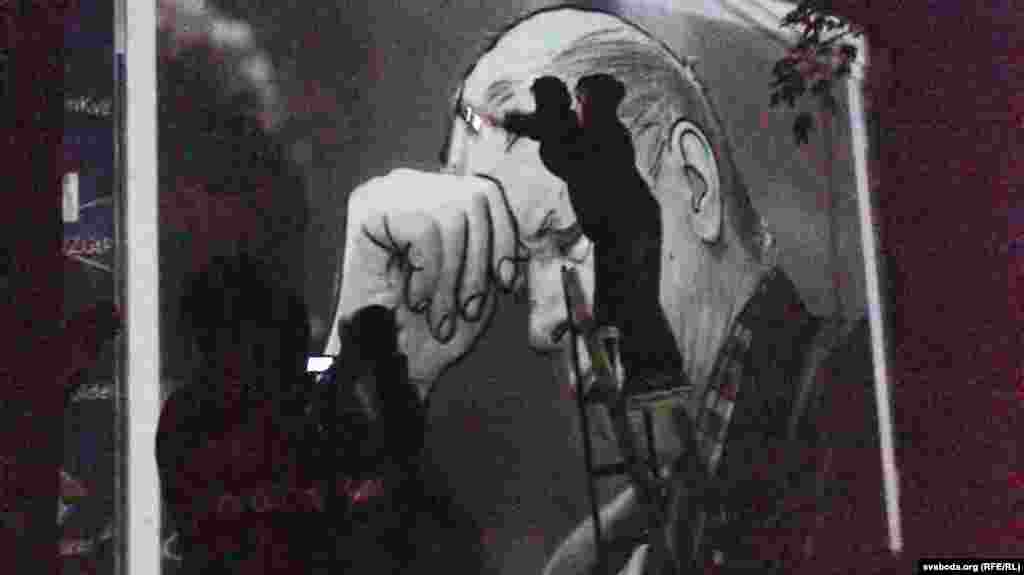 Ільля, Сяргей і Арцём адмыслова прыехалі зь Віцебска ў Менск, каб намаляваць тут вулічны партрэт Васіля Быкава. За гэта яны агулам атрымалі 18-мільённы штраф.
