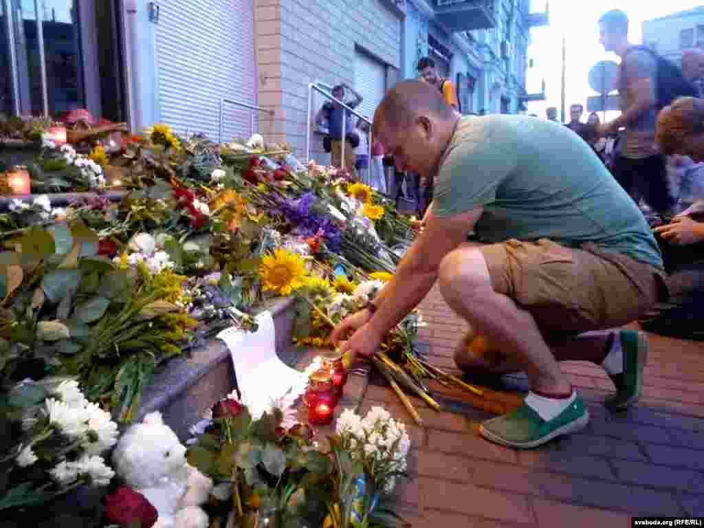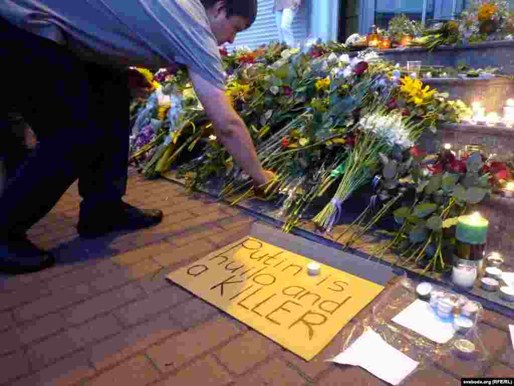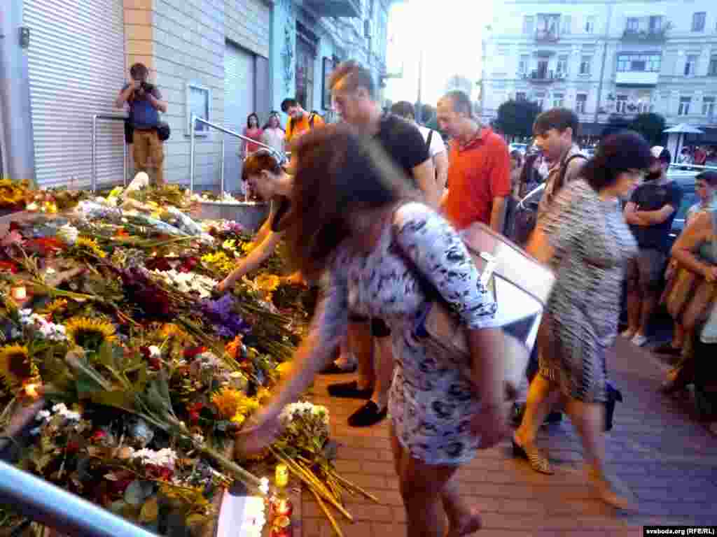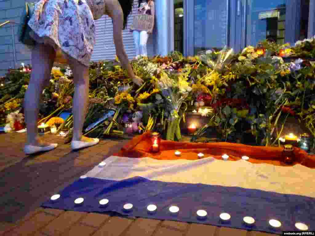 Украінцы нясуць кветкі і зьнічкі да будынку амбасады Нідэрляндаў