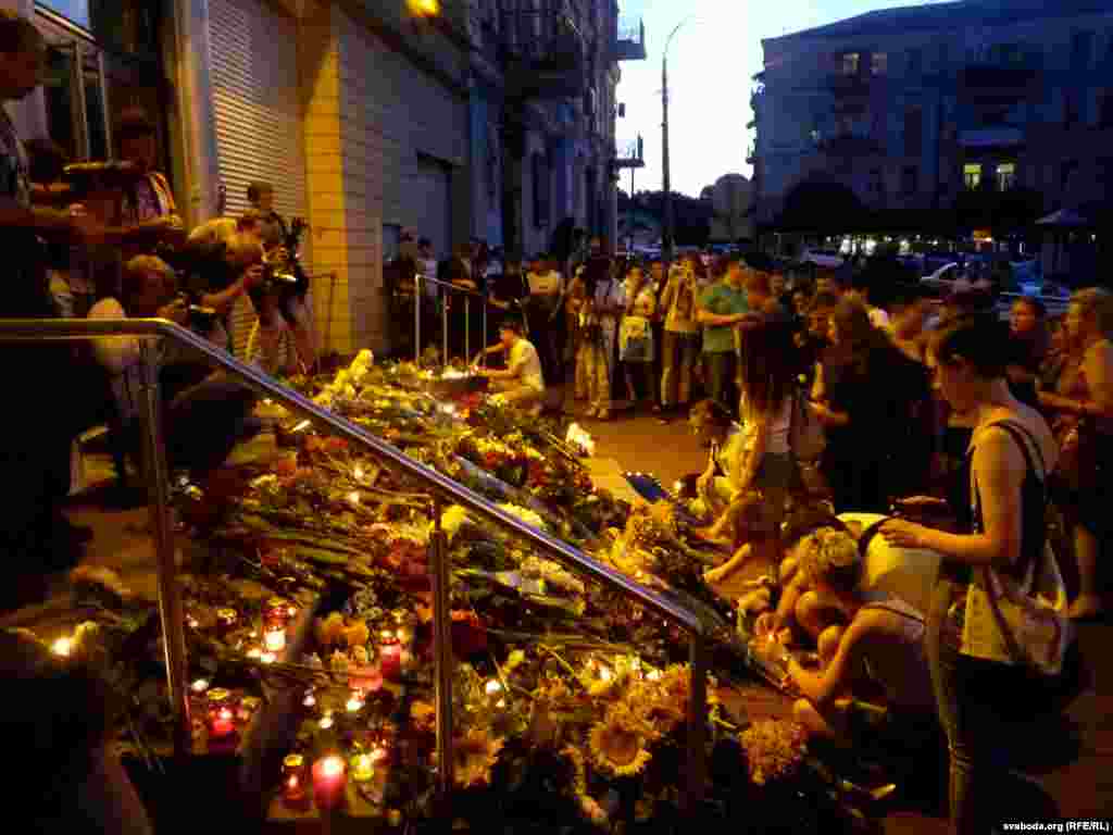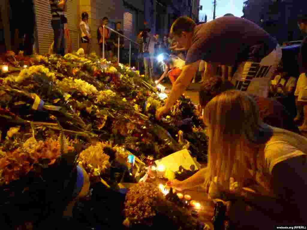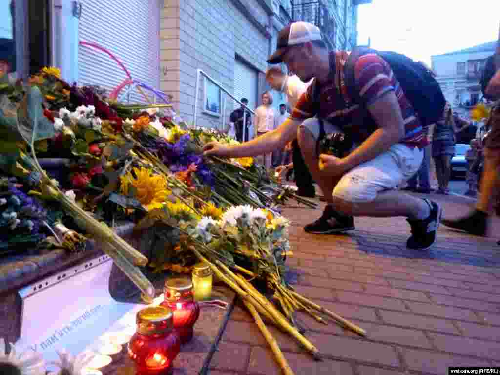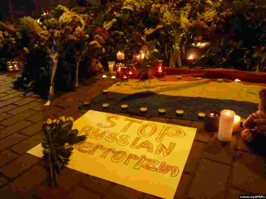 Украінцы нясуць кветкі і зьнічкі да будынку амбасады Нідэрляндаў