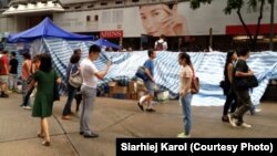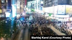 — На вуліцах вельмі спакойна. Цэнтральныя вуліцы пустыя, на іх няма трафіку аўтамабіляў, яны занятыя дэманстрантамі. Колькасьць дэманстрантаў у нецэнтральных раёнах зьменшылася, але ў цэнтральных, побач з будынкам ураду Ганконгу, яны ёсьць у вялікіх колькасьцях. Паводзяць яны сябе вельмі цывілізавана. І выглядае, што ўсе ганконгцы іх падтрымліваюць. Людзі ідуць у краму ці на працу і вітаюць пратэстоўцаў, шмат хто карыстаецца жоўтымі стужачкамі як сымбалем падтрымкі.