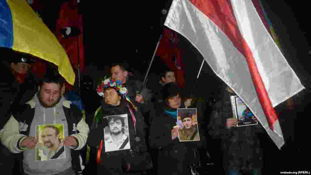 Каля 2 тысяч чалавек удзельнічалі сёньня ў акцыі памяці Жызьнеўскага, Нігаяна ды іншых актывістаў, якія былі забітыя год таму падчас пратэстаў у Кіеве. Акцыя пачалася на майдане Незалежнасьці, пасьля кароткага мітынгу яе ўдзельнікі прайшлі да вуліцы Грушэўскага, дзе працягнулі мерапрыемства.