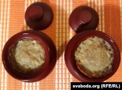 Трэба паціху перамешваць і чакаць, пакуль ня выкіпіць вада. Калі гэта адбудзецца, добра мяшаем, дадаём шклянку малака і 50 грамаў масла. Зноў перамешваем і даварваем у рондалі, або ў гліняным гаршчэчку ставім у духоўку на паўгадзіны (пры 180–200 градусах).