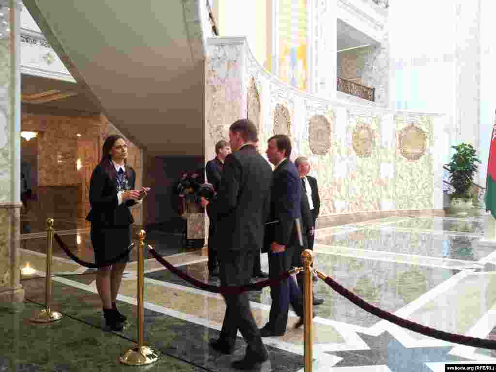 ФОТАГАЛЕРЭЯ: У калідорах Палаца незалежнасьці перад пачаткам перамоваў