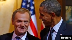Абама і Туск заявілі аб адзінстве ЗША і Эўропы перад абліччам расейскай агрэсіі