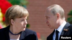 Стоячы побач з прэзыдэнтам Расеі Ўладзімерам Пуціным 10 траўня на прэсавай канфэрэнцыі ў Маскве, канцлер Нямеччыны Ангела Мэркэль заявіла: «Мы дасягнулі супрацоўніцтва паміж НАТО і Расеяй. У сувязі з крымінальнай і незаконнам, паводле міжнароднага права, анэксіяй Крыму і ў сувязі з ваенным канфліктам ва Ўсходняй Украіне, гэтаму супрацоўніцтву была нанесеная сур’ёзная шкода.»