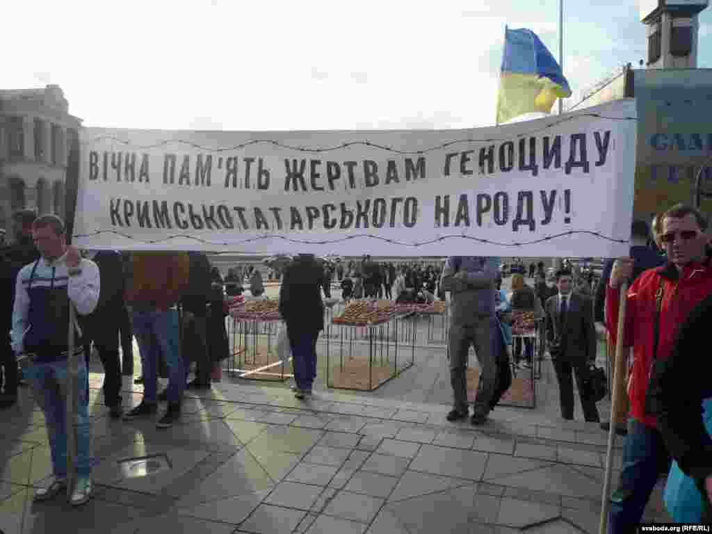 18 траўня ў Кіеве на Майдане Незалежнасьці некалькі тысяч чалавек сабраліся, каб ушанаваць ахвяраў дэпартацыі крымскататарскага народу, якая адбылася ў 1944 годзе.