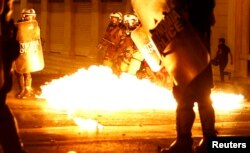 АМАП ўжыў сьлезацечны газ для разгону натоўпу, які ўвечары сабраўся на плошчы Сінтагма, праз дарогу ад грэцкага парлямэнту. Паводле паліцыі, сьлезацечны газ быў ужыты, калі з натоўпу моладзі паляцелі бутэлькі з запальнай сумесьсю і камяні.