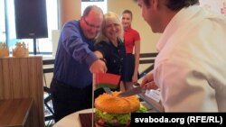На пытаньне журналістаў, ці не баіцца кампанія асноўнага канкурэнта — McDonald`s, які прыйшоў у Беларусь 19 гадоў таму і мае 7 рэстарацыяў у Менску і адзін у Віцебску, генэральны дырэктар Burger King у Расеі Дзьмітры Мядовы адказаў таксама пытаньнем: «А якое мяса вы больш любіце: падсмажанае на патэльні на алеі ці тлушчы, альбо мяса на адкрытым агні, на грылі?»