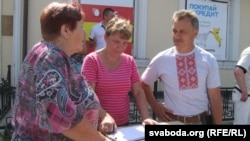 — Ну вось, маладыя дзяўчаты, якія зьбіраюць подпісы за Лукашэнку, падышлі да мяне і паставілі ўпяцёх подпісы за Караткевіч. Яны студэнткі, і подпісы іх паслалі зьбіраць, напэўна, пад прымусам. Але яны падышлі і паставілі за нашага кандыдата.