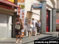 25 жніўня ў многіх банках, каля абменных пунктаў можна было назіраць чэргі. Але перадусім людзі аплачваюць камунальныя плацяжы: 25 жніўня – апошні дзень месяца, калі аплата прымаецца бязь пені за пратэрміноўку. Валюта на продаж была ў абменных пунктах Белаграпрамбанку, Белгазпрамбанку, Беларусбанку: касіры гатовыя былі прадаваць як эўра, так і даляры. Размаўляю зь людзьмі: