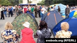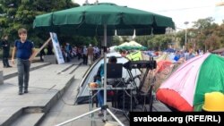 Ад самага пачатку было дзьве ў розных канцах лягера, але выглядае, што будзе болей. Ежу і ваду прыносяць людзі, раздаюць валянтэры. Пад’есьці тут можа кожны ахвотны, да чаго шчыра запрашаюць.