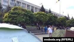Пратэстоўцы чакаюць, што прадстаўнікі ўлады выйдуць да іх пагаварыць, але ніхто не выходзіць.