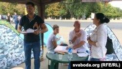 Месьціцца пад асобным тэнтам і вырашае ўсе арганізацыйныя пытаньні. Тут вядуць улік, ведаюць, колькі чалавек у кожным намёце, сочаць за парадкам і стараюцца не дапускаць правакацыяў. «Мы прыйшлі сюды, каб адстаяць свой гонар і годнасьць і забраць тое, што „яны“ ў нас скралі», — кажа хлапец, якога завуць Сяргеем. На фота ён зьлева. У сераду ўдзень, калі мы размаўлялі, было зарэгістравана 226 намётаў, але ўжо ўвечары да іх дадаліся яшчэ дзясяткі.