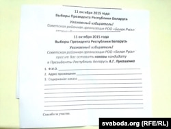 На іх неабходна ўказаць свае асабістыя зьвесткі і зьмест наказу. Паводле словаў пікетчыцы, якая працуе каля галоўнага ўваходу ў Камароўскі рынак, усе паперкі будуць перададзеныя асабіста кандыдату ў прэзыдэнты Аляксандру Лукашэнку.