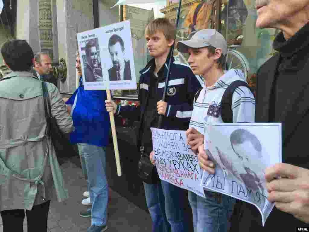 Лябедзька правёў пікет памяці Ганчара і Красоўскага каля ГУМу ВІДЭА