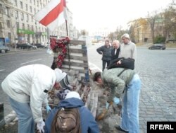 Сёньня у Кіеве з нагоды Дзядоў актывісты зладзілі прыбіраньне «народнага» помніка Міхасю Жызьнеўскаму на праезнай частцы вуліцы Грушэўскага.