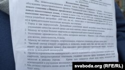 Пад зваротам, які таксама ўтрымлівае шэраг заўваг і прапаноў аб зьменах у Генпляне, падпісаліся каля пяцісот менчукоў. Перадусім гараджане прапаноўваюць кіраўніцтву Менску максымальна захаваць прыватную забудову, забясьпечыць мікрараёны якаснай пітной вадой, пашыраць і паляпшаць інфраструктуру ў раёнах новабудоўляў. У лісьце таксама пішуць, што грамадзкае абмеркаваньне Генэральнага пляну цягам месяца — вельмі кароткі тэрмін. І просяць яго працягнуць, а таксама адвесьці для гэтага большае памяшканьне і зручнейшы час.