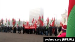 Туманным ранкам 7 лістапада некалькі сотняў гамельчукоў з афіцыйнымі чырвона-зялёнымі сьцягамі, а таксама з чырвонымі штандарамі з надпісам «КПБ» выйшлі на плошчу Леніна, каб узяць удзел у кароткім мітынгу да чарговых угодкаў кастрычніцкага перавароту ў Петраградзе ў 1917 годзе.