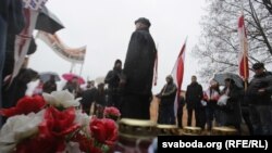 Акцыя памяці адбылася пад моцным дажджом і пад наглядам вялікай колькасьць сілавікоў у цывільным, якія фільмавалі падзею.